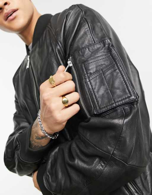 ASOS DESIGN oversized real leather bomber jacket in black with Very well made.