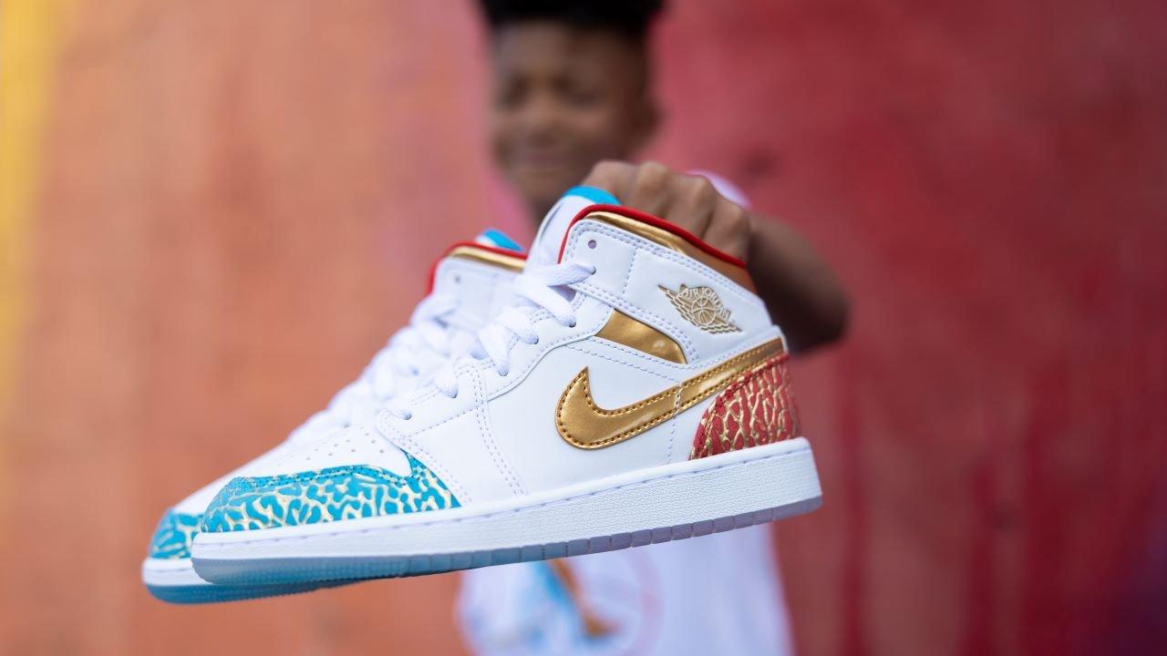 Jordan AJ 1 Mid trainers in blue and white with gold detail Very well made.