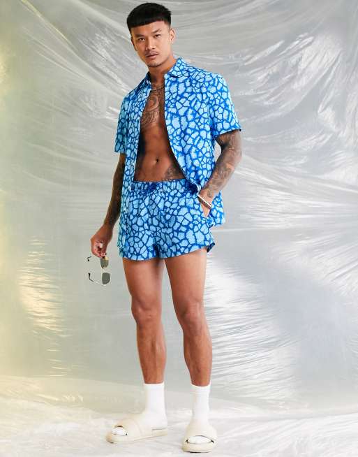 ASOS DESIGN co ord swim shorts in super short length in blue Very well made.