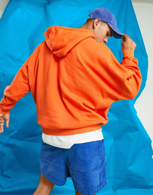 ASOS DESIGN oversized hoodie in orange with skate back and sleeve Very well made.