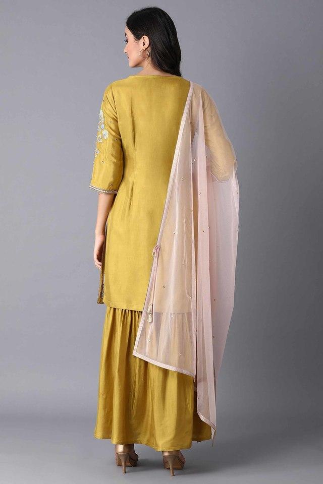 Buy W Yellow Solid Round Neck Shantung Womens Kurta Set Shoppers Very well made.