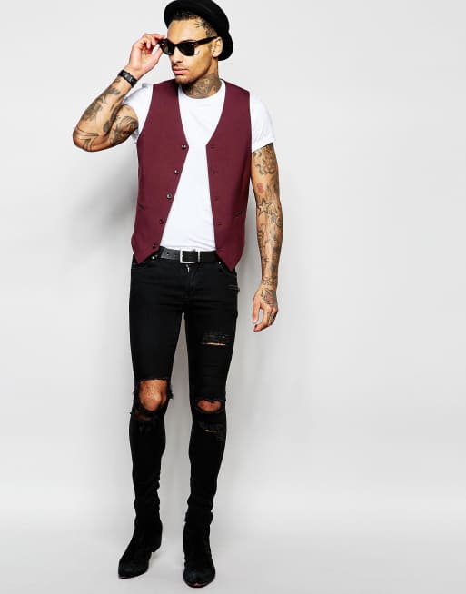 ASOS Skinny Waistcoat In Burgundy Very well made.