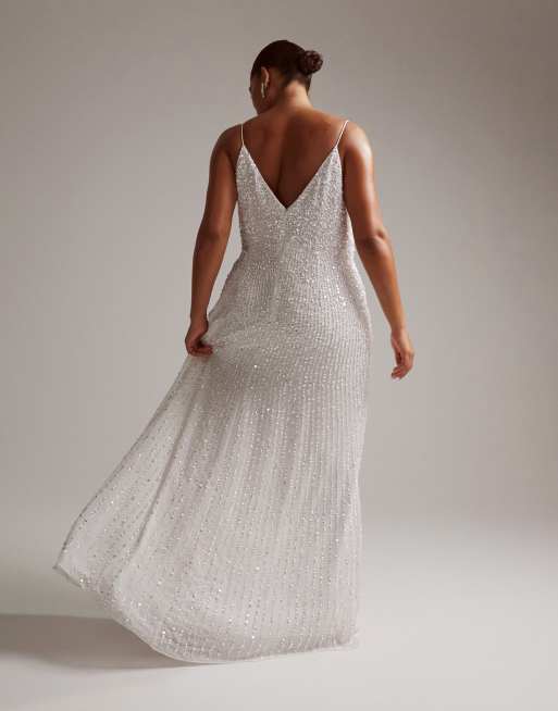 ASOS DESIGN Curve Nia embellished drape side cami maxi wedding Very well made.