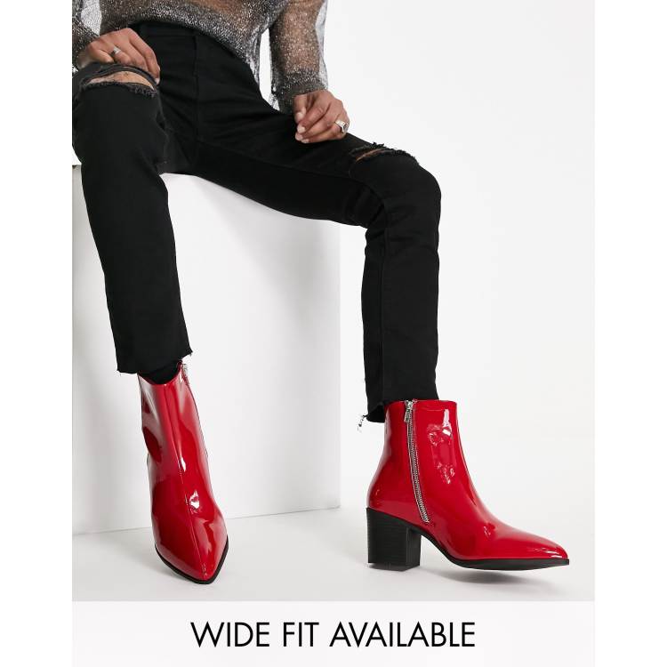 ASOS DESIGN heeled boots in red patent faux leather ASOS Very well made.