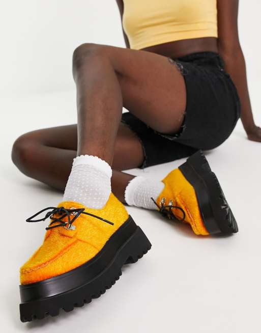 ASOS DESIGN Memphis chunky lace up flat shoes in orange ASOS Very well made.