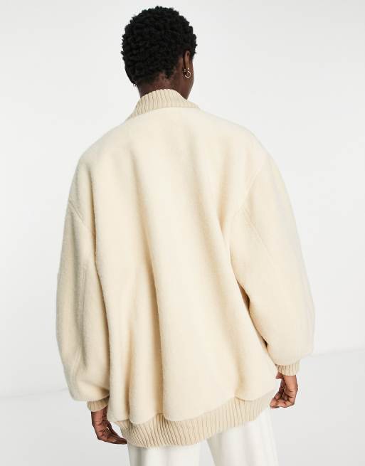 ASOS DESIGN brushed bomber jacket in stone Very well made.