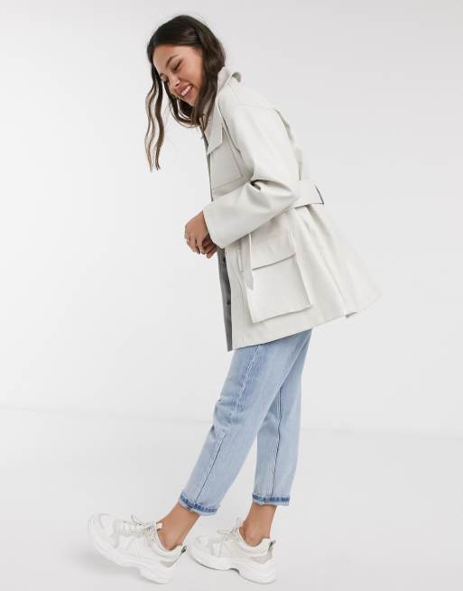 ASOS DESIGN four pocket belted faux leather jacket in white ASOS Very well made.