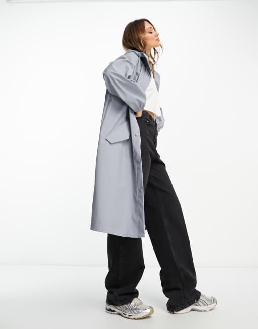 ASOS DESIGN rubberised rain parka coat in slate blue ASOS Very well made.