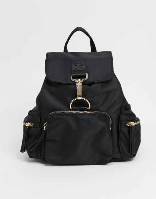 ASOS DESIGN Zaino nero in nylon con moschettone ASOS Very well made.