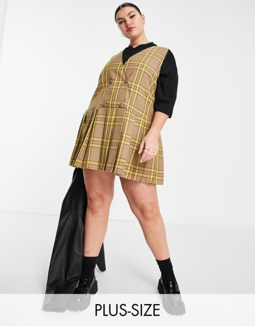 COLLUSION Plus check pinafore mini dress in brown ASOS Very well made.