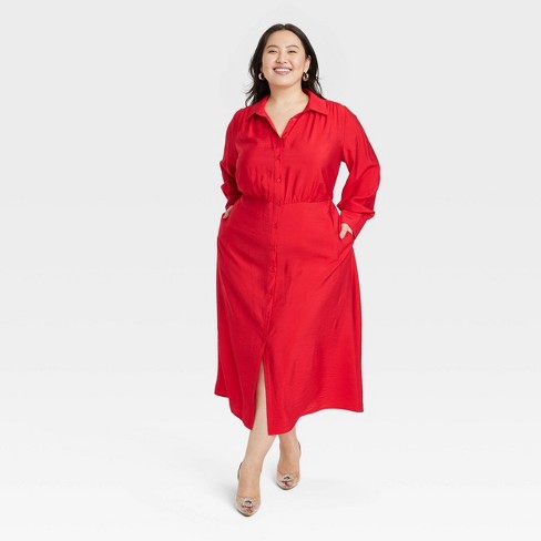 Women s Long Sleeve Collared Midi Crepe Shirtdress A New Day Very well made.