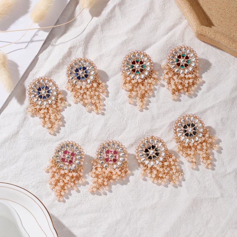 Fashion Boho Luxury Crystal Flower Drop Earrings For Women Indian Very well made.
