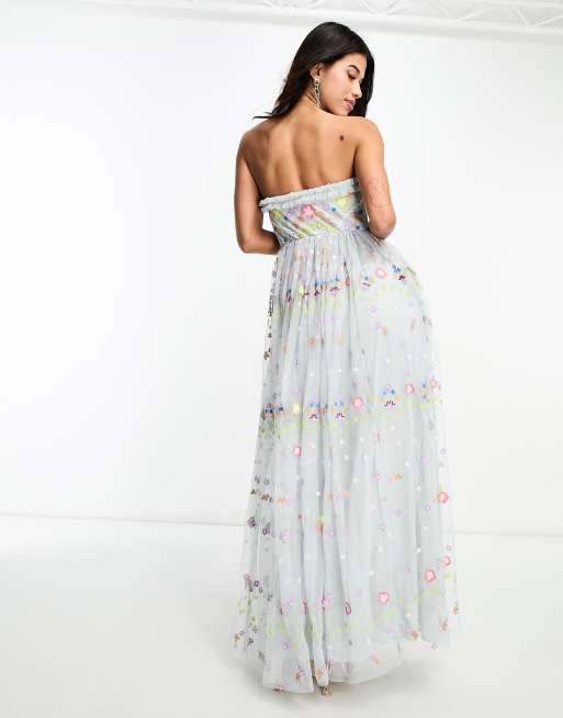 Amy Lynn Zion bandeau maxi dress in black based floral embroidery Very well made.