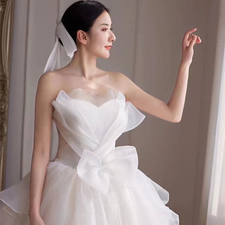 Ready stock wedding Gown Dress Korean White Lace temperament Bride Very well made.