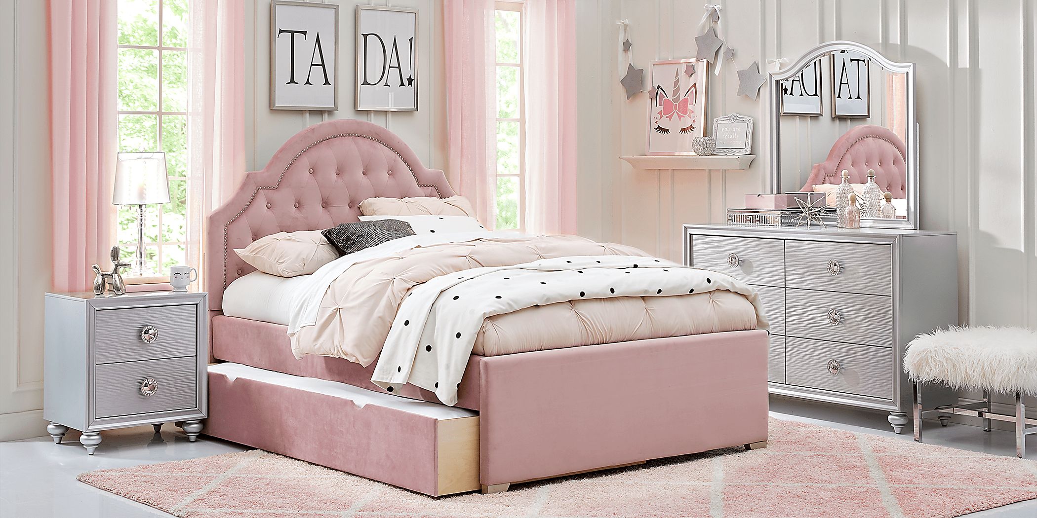Evangeline 5 Pc Silver Gray Full Bedroom Set With Mirror Dresser 3 Pc Full Upholstered Bed Very well made.
