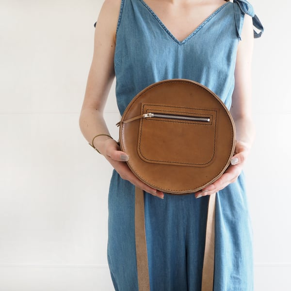 Brown Leather Bag Round Bag Crossbody Round Purse Gift Handbag Very well made.