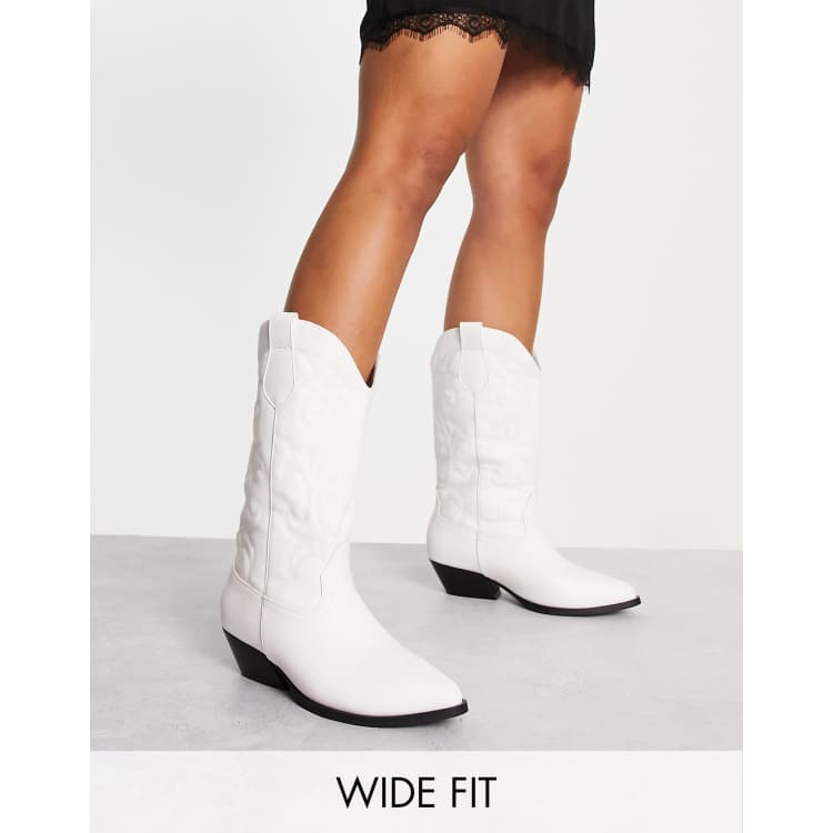 ASOS DESIGN Wide Fit Andi flat western knee boots in white Very well made.
