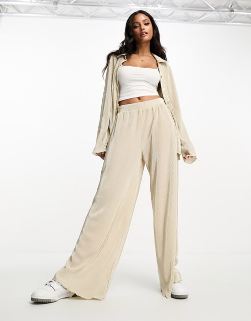Stone Woven Pleat Detail Wide Leg Trousers PrettyLittleThing Very well made.
