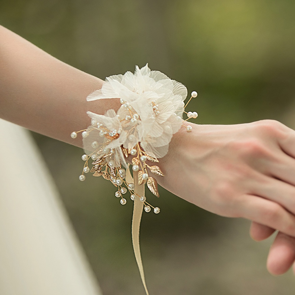 Champagne Cloth Wrist Flower Band Decorative Wedding Beads Very well made.