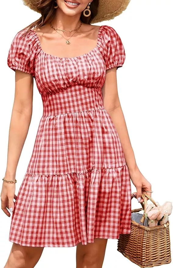 ZAFUL Women s Casual Plaid Mini Dress Scoop Neck Short Puff Sleeve Very well made.