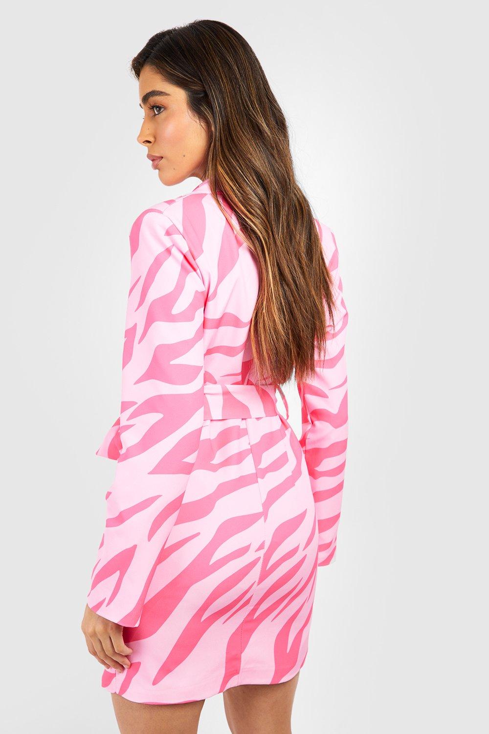 Pink Zebra Tie Waist Blazer Dress boohoo Very well made.