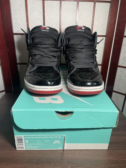 RARE Nike SB Dunk High Hi Bred Black Red Patent Leather AJ7730 001 Siz 10 Jordan Very well made.