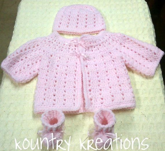Crochet Baby Sweater Hat Booties Set Kountry Kreations Very well made.