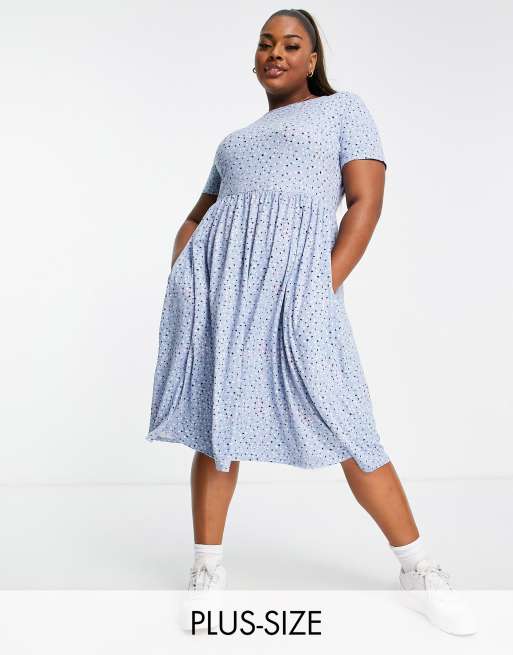 Simply Be smock midi dress with pockets in blue ditsy floral Very well made.