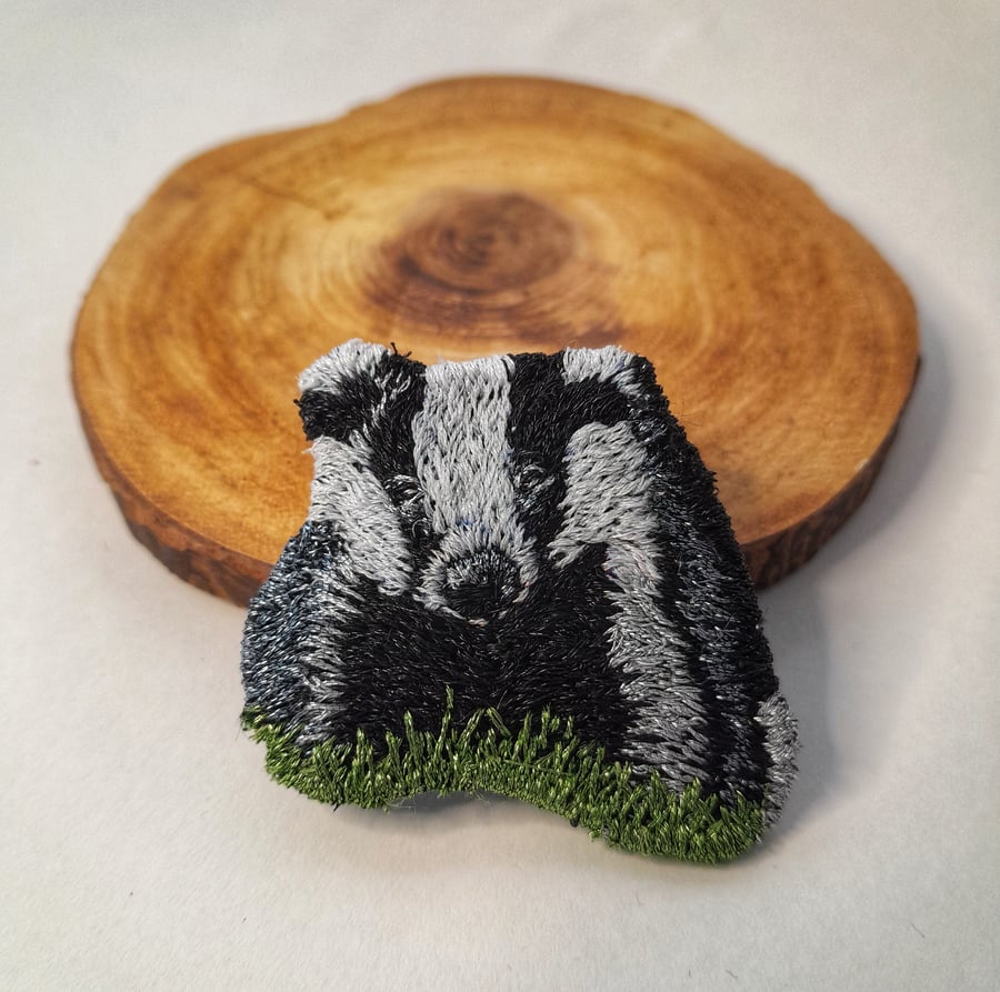 Hand embroidered Metallic Badger Brooch Folksy Very well made.