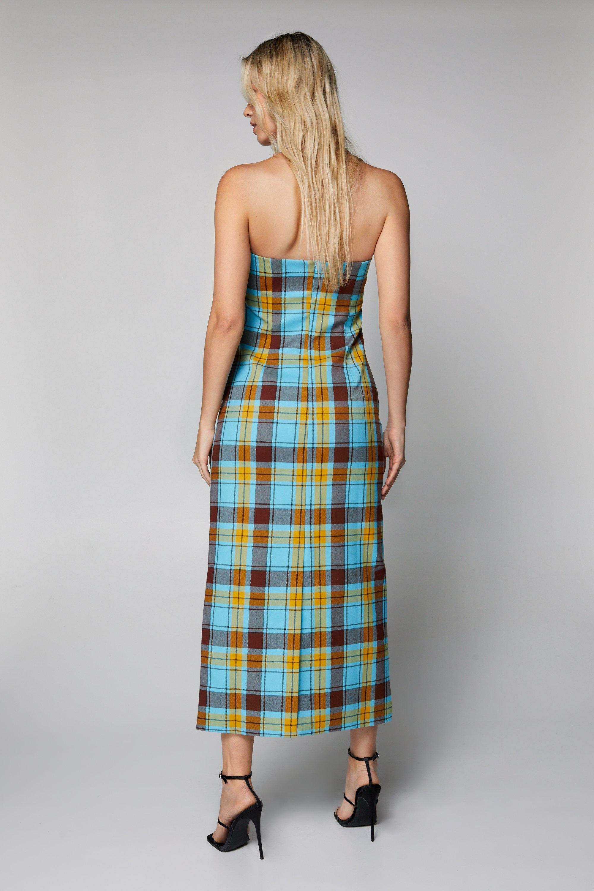 Plaid Strapless Midi Dress Very well made.