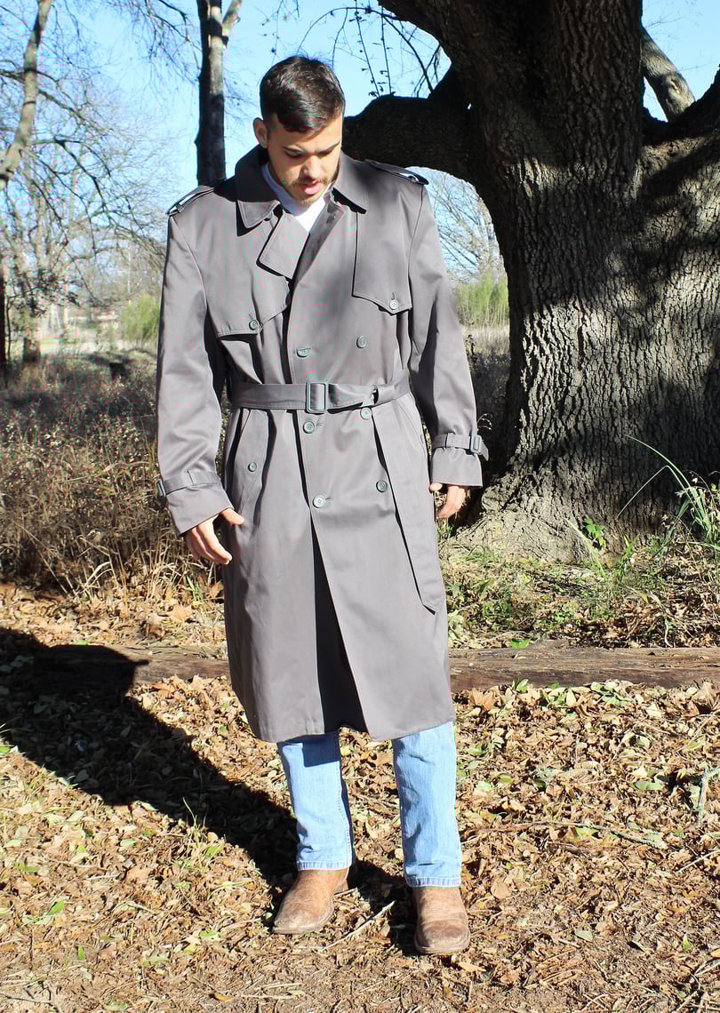 Vintage 1970s Stratojac Trench Coat 46R Men Gray Cotton blend Very well made.