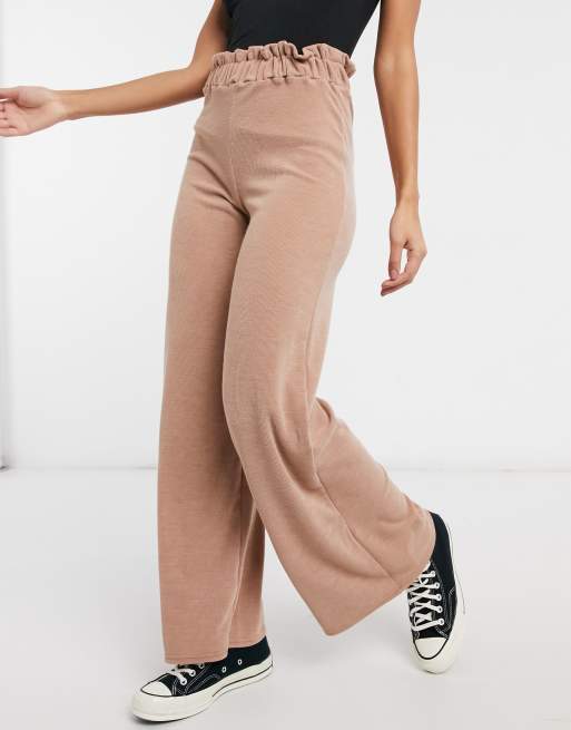 ASOS DESIGN brushed rib wide leg trouser with paperbag waist in Very well made.