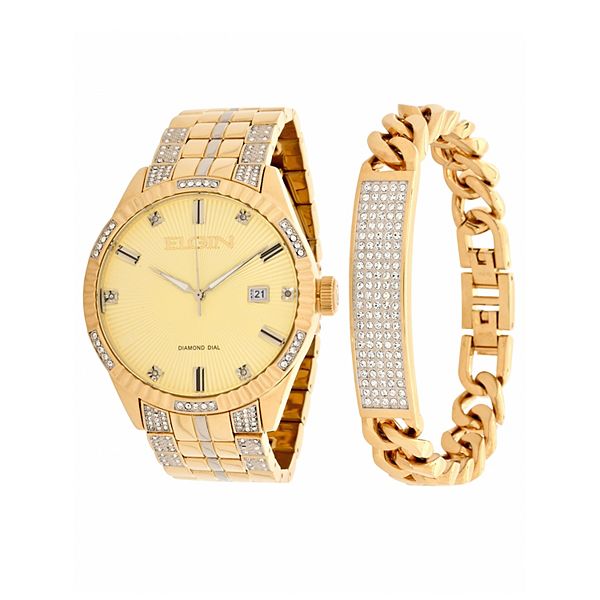 Elgin Men s Gold Tone Crystal Accent Watch and Bracelet Set Very well made.