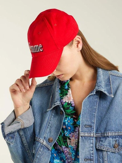 Balenciaga Embroidered Cotton canvas Baseball Cap In Red ModeSens Very well made.