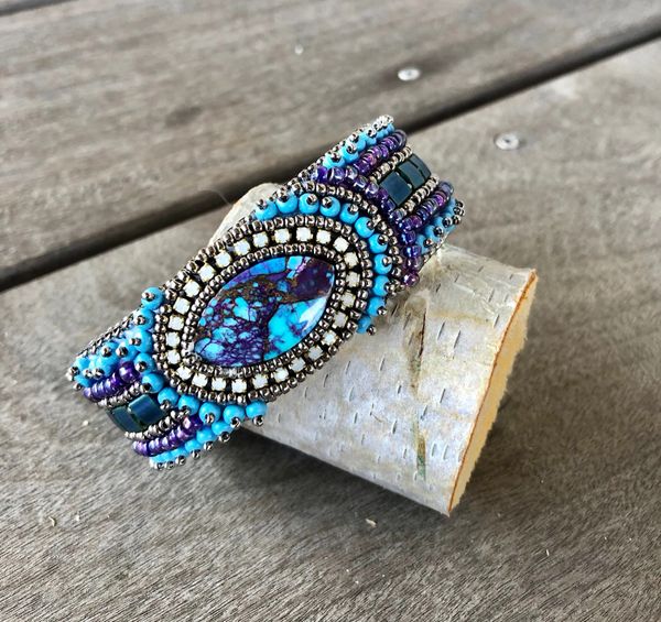 Bead Embroidered Cuff Bracelet With Blue Labradorite Cabochon Very well made.