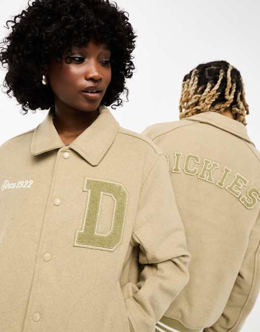 Dickies west vale varsity jacket in khaki with back embroidered logo Very well made.