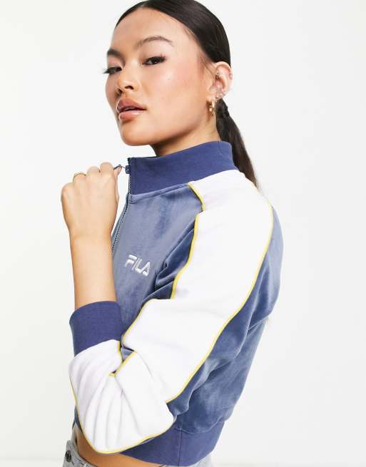 fila velour cropped half zip sweat in blue ASOS Very well made.
