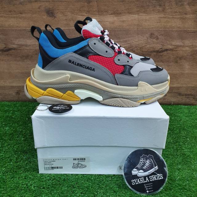 SEPATU SNEAKERS BAL3NCIAG4 TRIPLE S GREY RED BLUE BNIB Very well made.