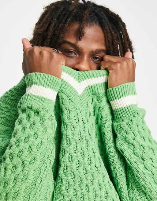 ASOS DESIGN oversized cable knit v neck sweater with tipping in Very well made.