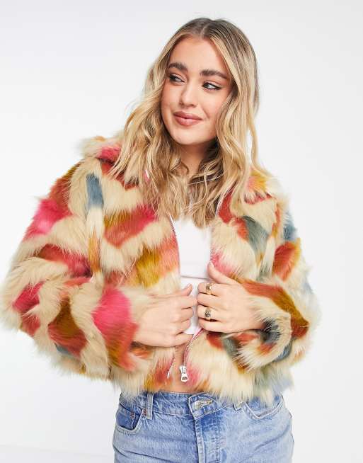 French Connection dallow faux fur jacket in multi color ASOS Very well made.