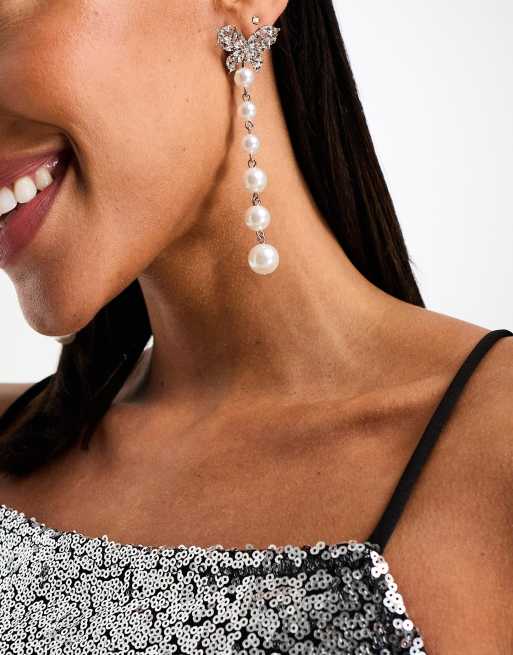 True Decadence embellished butterfly statement earrings in faux pearl Very well made.