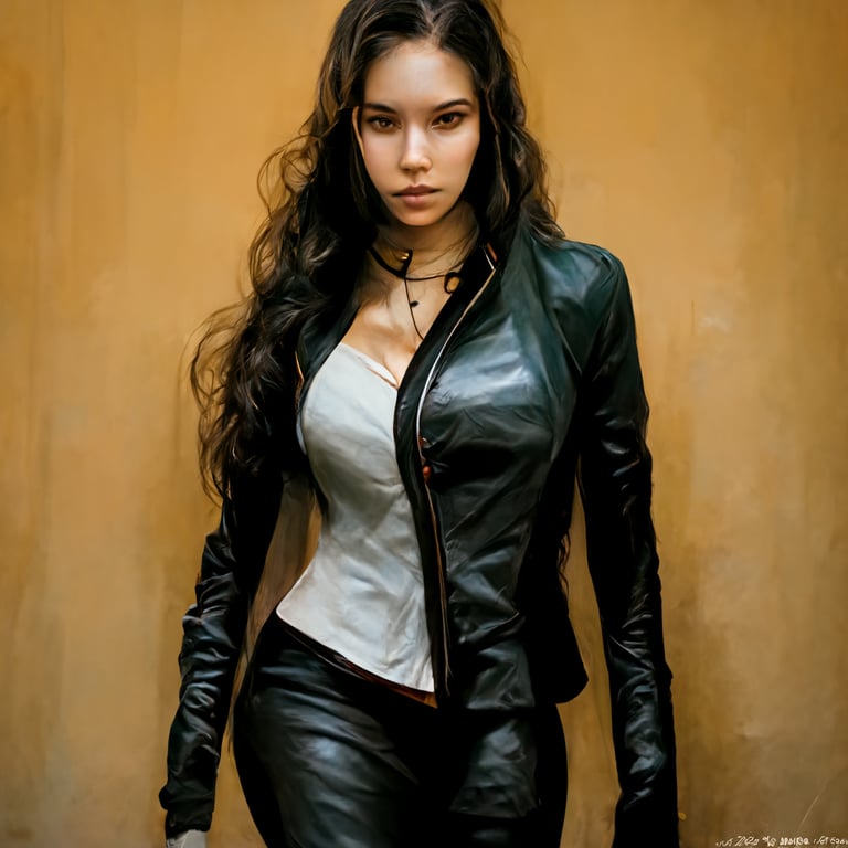 prompthunt gorgeous Latina female tall wearing a black leather Very well made.