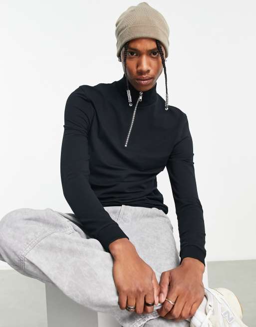 ASOS DESIGN Felpa attillata nera con zip corta ASOS Very well made.