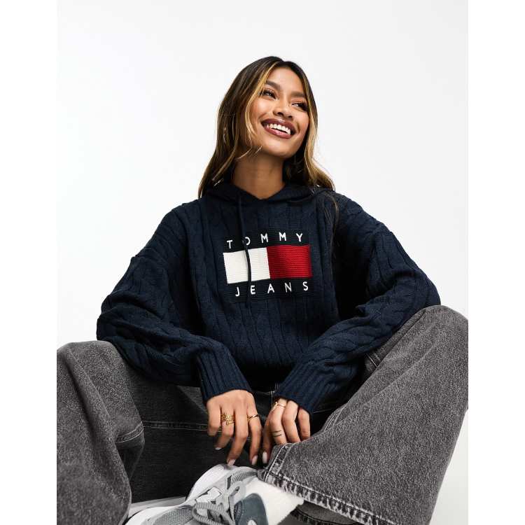 Tommy Jeans Felpa con cappuccio in maglia a trecce blu navy con Very well made.