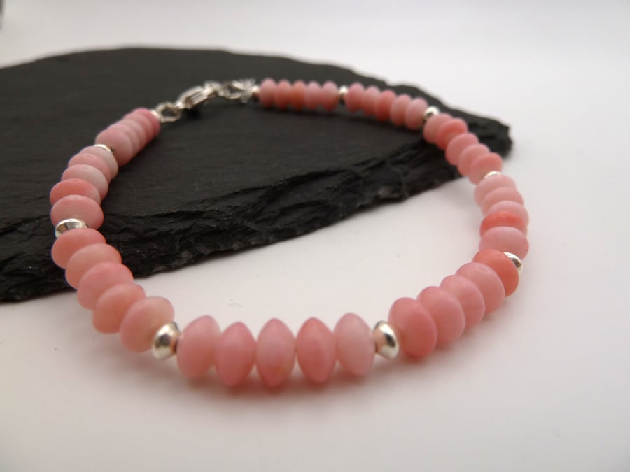 pink bamboo coral bracelet sterling silver Folksy Very well made.