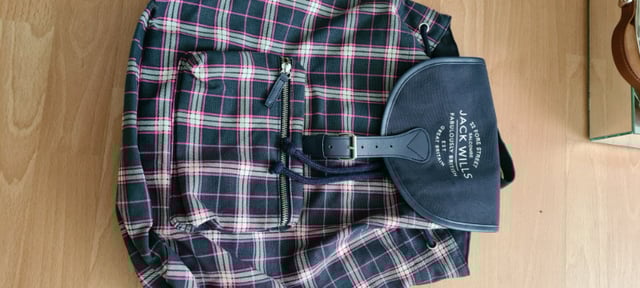 Jack Wills backpack blue pink tartan canvas good used condition eBay Very well made.