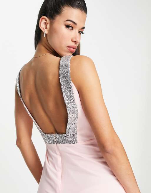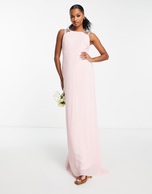 TFNC Petite square back embellished maxi dress in light pink Very well made.