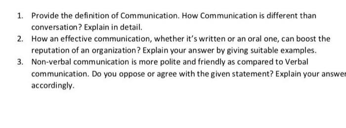 Solved 1. Provide the definition of Communication. How Chegg Very well made.