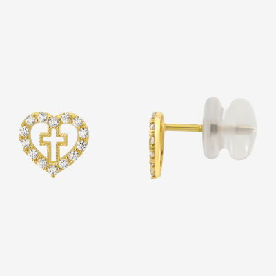 White Cubic Zirconia 14K Gold 6.5mm Heart Stud Earrings JCPenney Very well made.