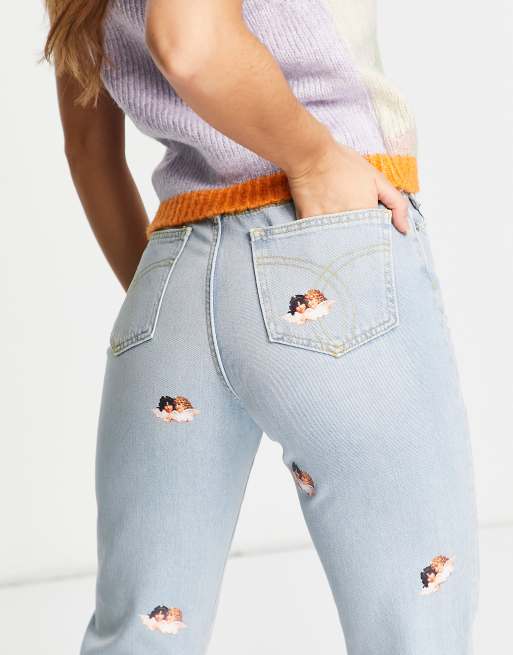 Fiorucci relaxed mom jeans in all over mini angels Very well made.